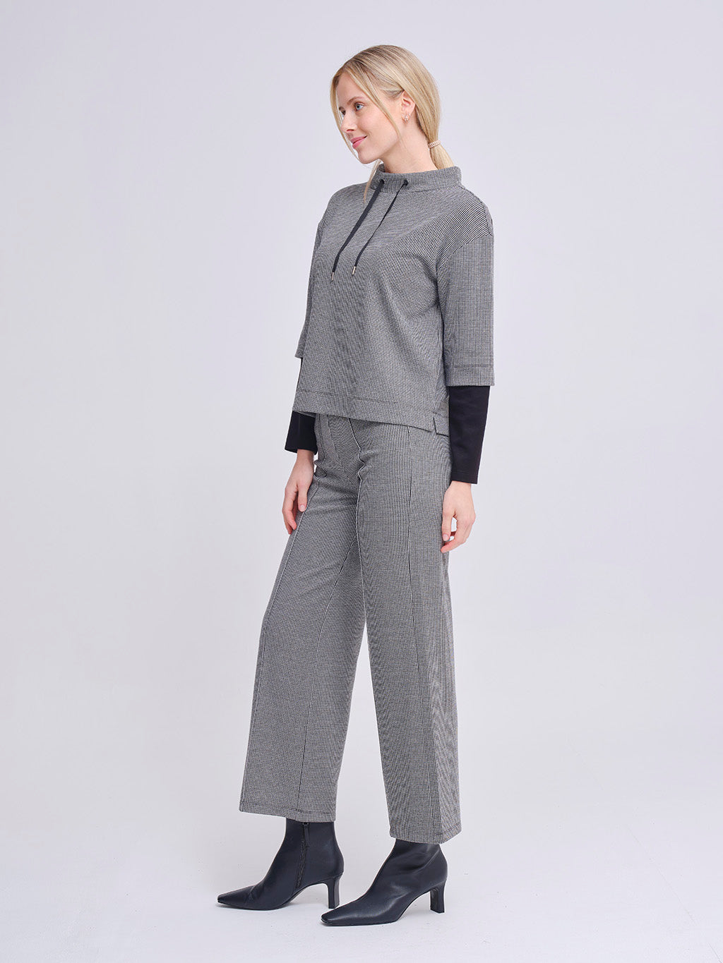 Pantalón de corte recto en tejido de cuadros gris, con pinzas delanteras que estilizan la silueta y aportan un toque elegante. Cintura cómoda y pernera ligeramente amplia, ideal para looks casuales de oficina o combinaciones más desenfadadas. Versátil y atemporal, se convierte en un básico imprescindible de temporada.